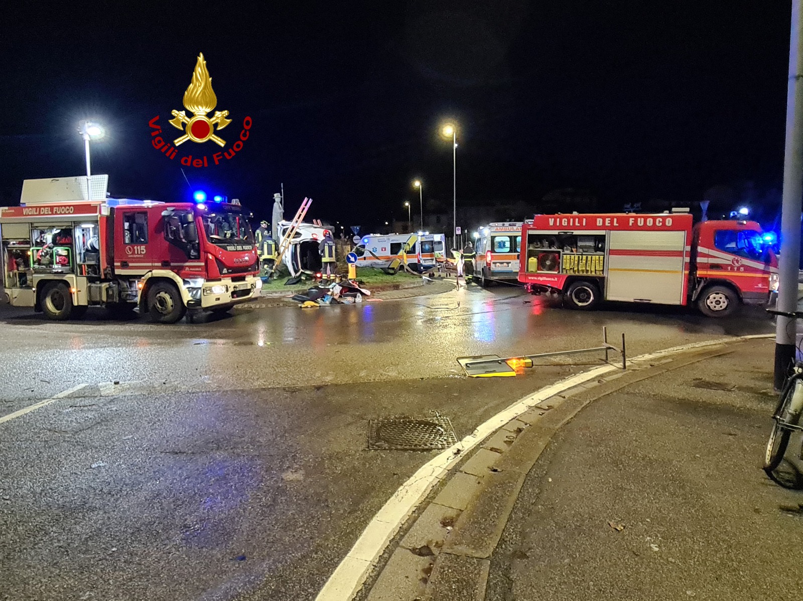 Auto ribaltata su un fianco in Lungarno Aldo Moro, soccorsi dei Vigili del fuoco e intervento della Polizia Locale.