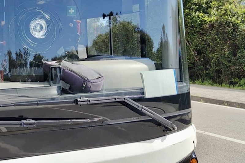 Il danno riportato al vetro anteriore ha reso necessario interrompere la corsa. L’autista ha immediatamente richiesto l’intervento delle forze dell’ordine, mentre l’aggressore si è dileguato prima dell’arrivo delle pattuglie.