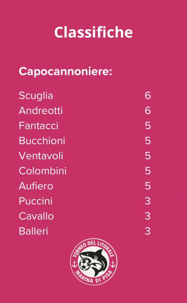 Questo torneo si conferma un appuntamento imperdibile per chi ama il pallone e per chi desidera vivere un’estate fatta di sport, sorrisi e serate sotto le stelle, respirando l’atmosfera unica del litorale pisano.