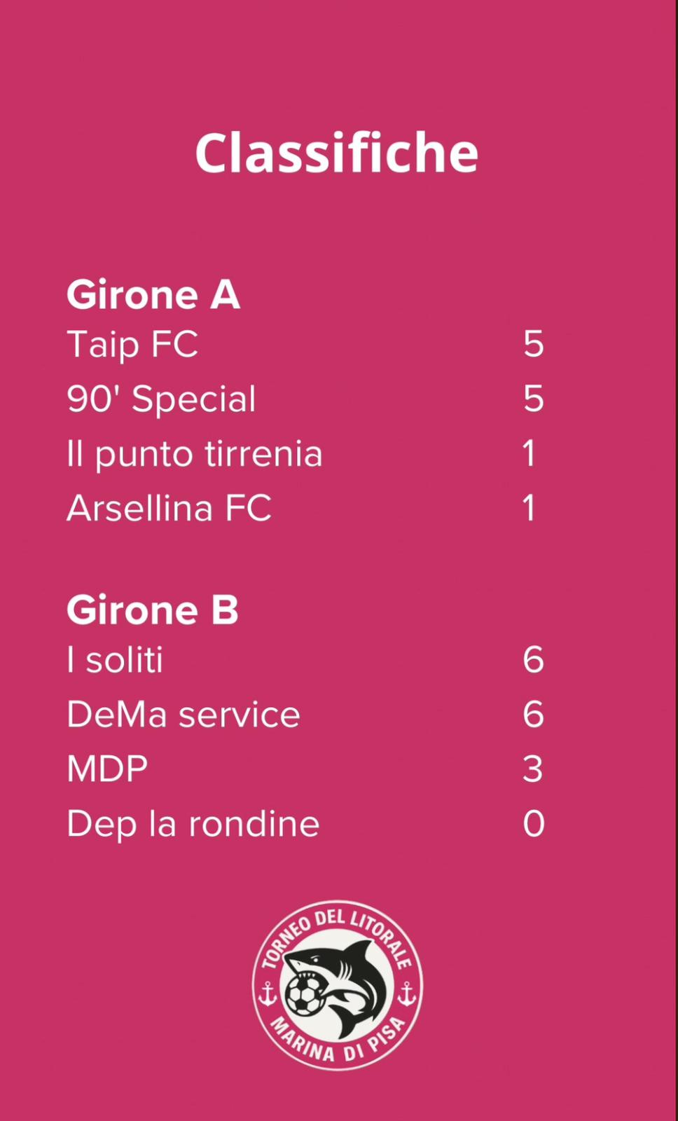 Questo torneo si conferma un appuntamento imperdibile per chi ama il pallone e per chi desidera vivere un’estate fatta di sport, sorrisi e serate sotto le stelle, respirando l’atmosfera unica del litorale pisano.
