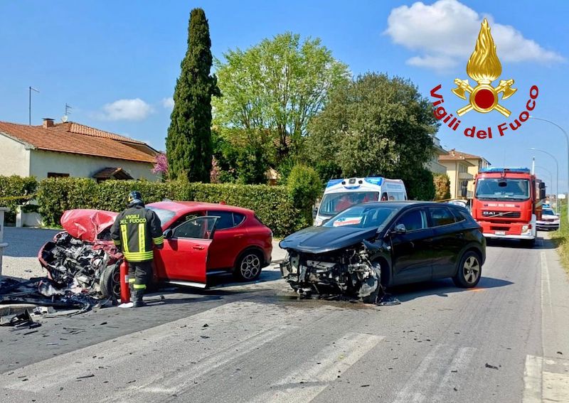 Un violento incidente stradale si è verificato nel primo pomeriggio di oggi (sabato 11 aprile) in via Gramsci a Ponsacco, dove due auto si sono scontrate in un impatto fronto-laterale. È accaduto intorno alle 14:05.