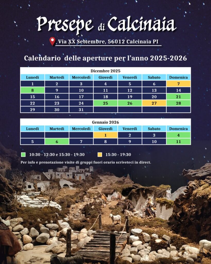 È ormai divenuto una vera istituzione, una tradizione irrinunciabile: senza di esso, il periodo natalizio a Calcinaia avrebbe un vuoto difficile da colmare. Parliamo del presepe organizzato dalla Parrocchia di Calcinaia e dai suoi fedeli, un’opera che ogni anno riesce a rinnovare stupore, emozione e senso di comunità.