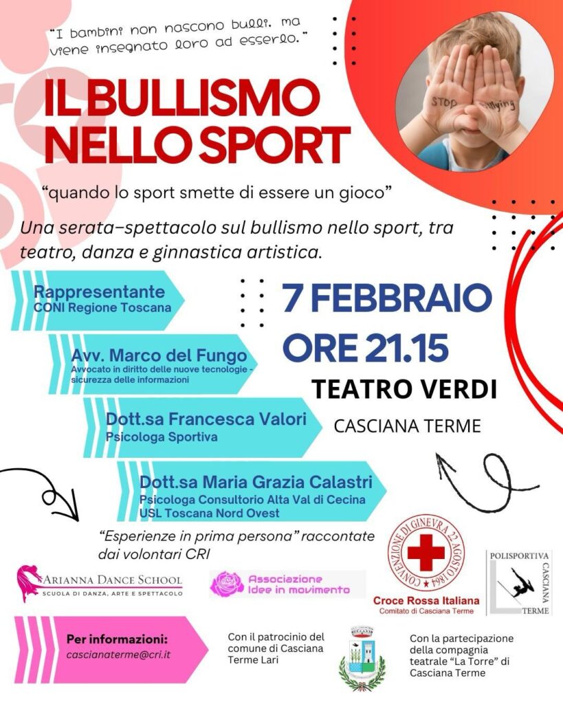 In occasione della Giornata contro il Bullismo e il Cyberbullismo, sabato 7 febbraio 2026, alle ore 21.15, il Teatro Verdi di Casciana Terme ospiterà la serata–spettacolo “Il bullismo nello sport: quando lo sport smette di essere un gioco”, un evento aperto alla cittadinanza dedicato alla prevenzione e alla riflessione su un fenomeno purtroppo sempre più presente anche nelle comunità più piccole.