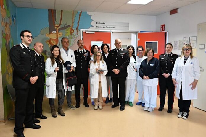 I Carabinieri arrivano con doni e sorrisi, regalando ai piccoli pazienti un giorno diverso dal solito.