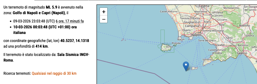 Terremoto di magnitudo ML 5.9 del 10-03-2026 ore 00:03:48 (Italia) in zona: Golfo di Napoli e Capri (Napoli)